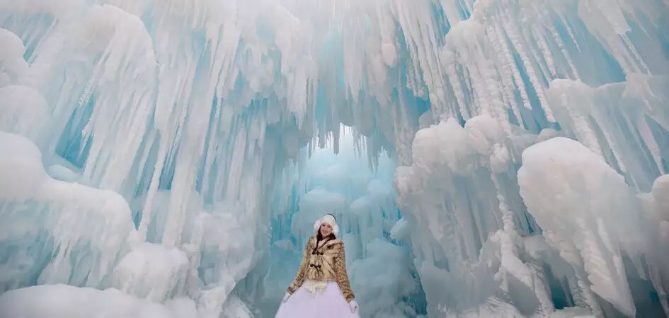 工人使用洒水装置每天至少增长1万个冰柱,2300万公升的水通过消防软管流到这里。这是通过名为“冰柱养成”的技术手工打造而成,让冰柱形成之后再通过人工去雕琢。