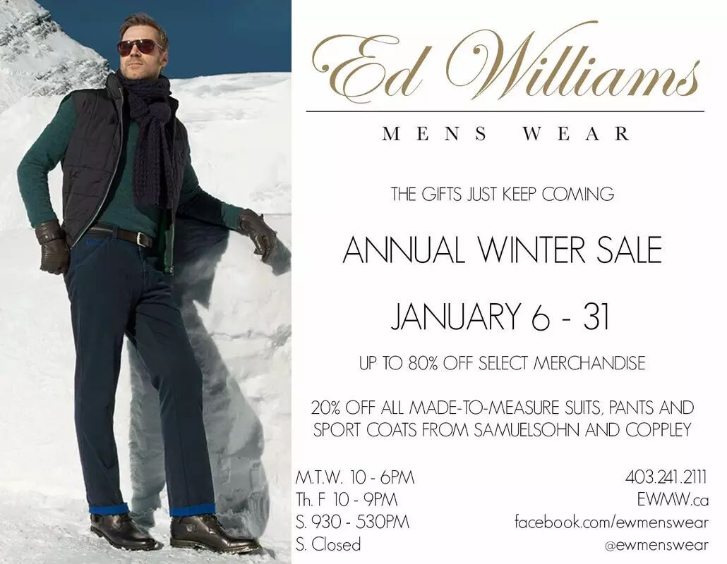 位于Crowfoot Centre Village,这家店出售加拿大和欧洲制造的男士服装已经有几十年了。在这家店你还有更多的选择,比如休闲装、职业装、鞋、外套及配饰,还有正式的和休闲西装适应任何的特殊场合。这里有四个裁缝可以为你量身定做,不管你是买现成的还是专门定制的,应该都可以找到适合自己。