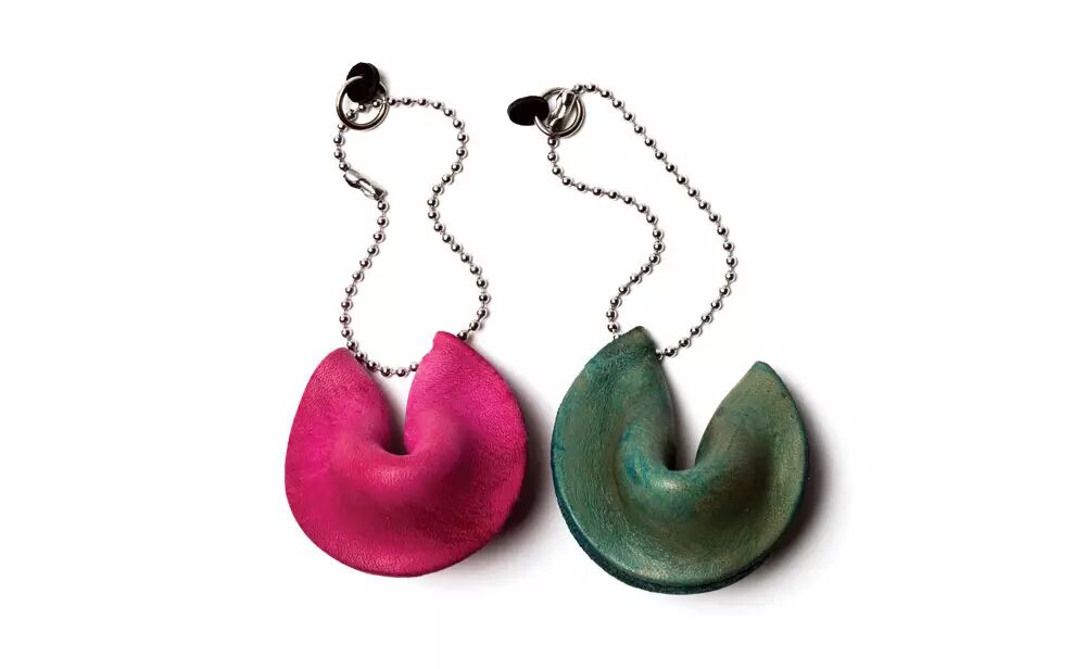 有些餐馆在客人用餐完毕之后会送一个幸运饼,是不是和上图一样的造型呢?当地皮革工匠 Kat Marks的工作室出品各种皮革制品,这个钥匙链只是其中偶然的创意。
