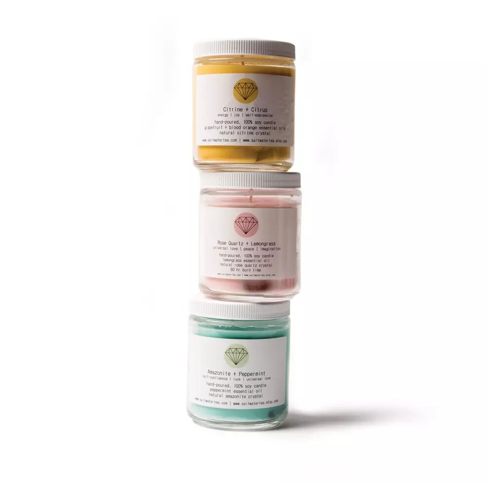 #8 黄水晶+柑橘,粉水晶+香茅,绿长石+薄荷的各式蜡烛
