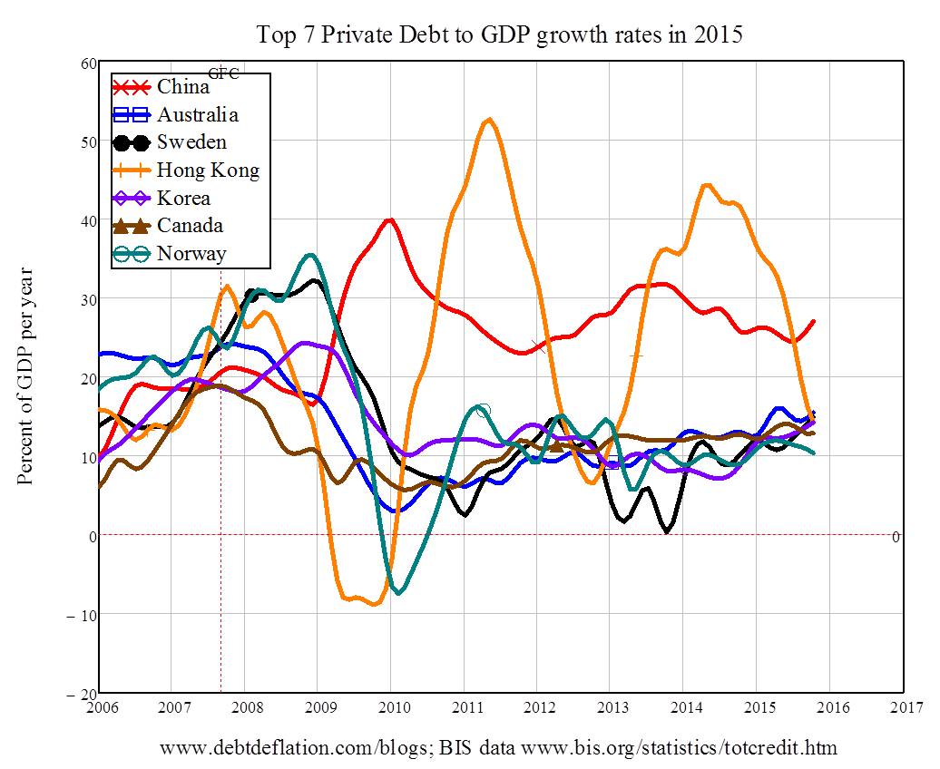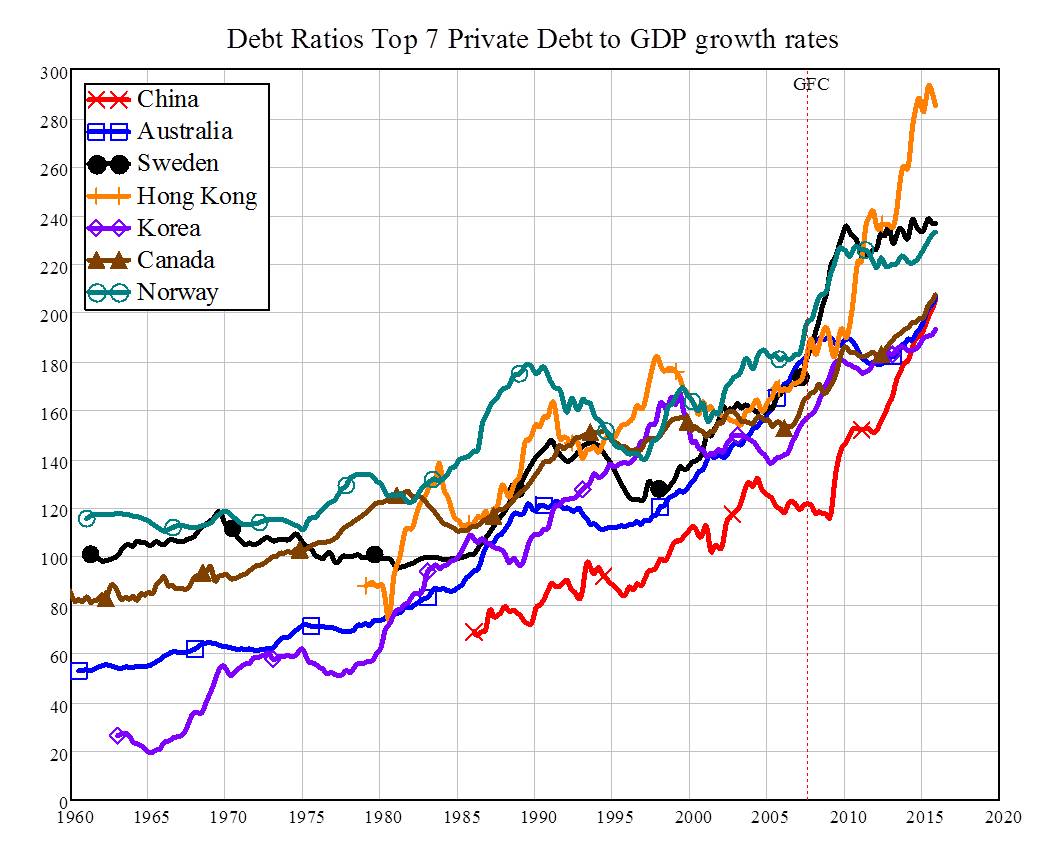 以上所有七个国家的私有债务占国内生产总值的比例均超过国内生产总值的175%,去年的私有债务增速超过国内生产总值的10%。