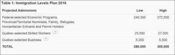移民部部长麦家廉(John McCallum)3月8日上午公布2016年加拿大移民计划报告,报告中的名额创下了近几年的新高,为家庭团聚移民和难民提供更大的名额空间。2016年加拿大计划接收28万至30.5万移民(目标为30万)。包括难民配额在51,000至57,000之间,经济类移民名额在151,200至162,400之间,家庭团聚移民的名额在75,000到82,000之间。这一计划中重要的是, 加拿大将要在2016年增加家庭团聚的名额,尽快减少积压的申请并加快处理申请时间。