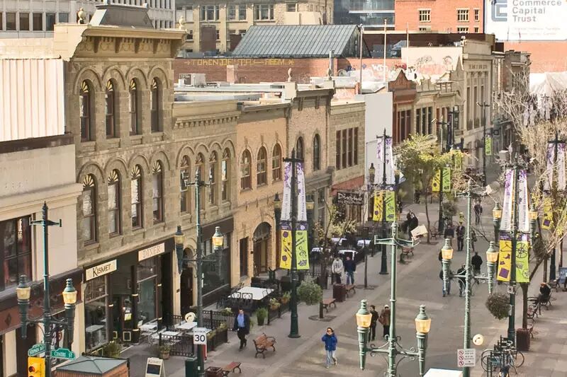 如今的史蒂芬大街(Stephen Ave)已是卡城人生活中不可或缺的一部分,商店林立,画廊,餐厅延续4个街区,其中包括霍尔特·伦弗鲁(Holt Renfrew),寇尔购物(The Core),银行家大厅(Bankers Hall),斯科舍中心(Scotia Centre)。汇集了160多家商店中的很多商品,包括独家发行的时装,饰品,和各种生活用品,在城中的任何一个地方都是无法见到的。