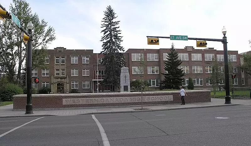 Western Canada High School(西加拿大高中)位于靠近 Downtown的Cliff Bungalow 社区,靠近卡尔加里的豪宅区 Mount Royal(皇家山) ,学区包括了 Downtown(包括Chinatown) 、Mount Royal等社区。学校起源于 100多年前的私立男校 Western Canada College ,在上个世纪20 年代由于私立学校出现财政困难,学校和土地卖给了卡尔加里教育局,成为了公立学校,名字改为现名。