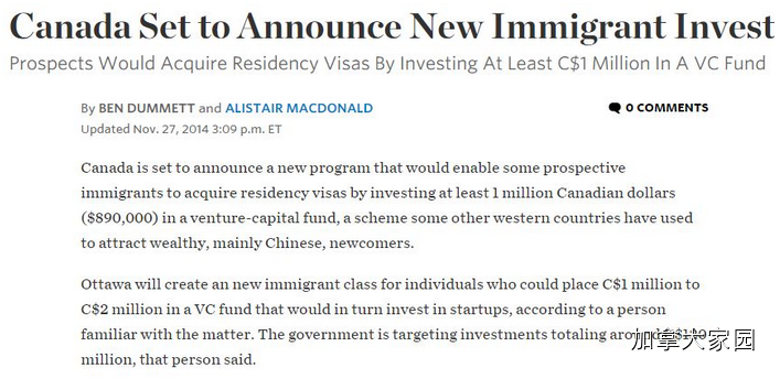 而风险投资基金投资移民则解决了这个问题。加拿大今年2月份透露了新项目计划,但目前为止还没有公布任何细节。