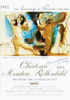 最为人们津津乐道的是1973年的酒标-来自毕加索的“酒神狂欢图”。当时木桐买下毕加索的这幅画就是为了将其设计为酒标,无奈毕加索本人不同意,直至他死后,在他女儿的首肯下,这幅画才历尽艰辛的成了令人瞩目的1973年木桐堡的酒标。