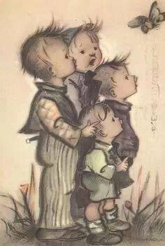 当Hummel修女手持炭笔勾勒乡间孩童时,她一定不曾想到人们对其作品的喜爱在一个世纪中绵延不减。这些儿童画中捕捉到的安宁和睦的瞬间令人会心。Hummel从不以修道生活为苦,即便在深受迫害的纳粹时期,她仍热爱描绘玩耍的孩子,缝纫的老妇,田野的兔子。在Hummel的作品中爱似涓涓细流满盈而溢,获得爱,分享爱,传播爱,尽管Hummel并不自知,但其作品因高贵的品格何尝不是荣耀了造物之神。