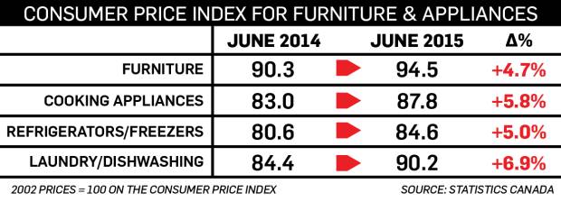 根据加拿大银行Bank of Canada的报告,家具和电器的价格快速上涨。加拿大很多商品价格的上涨的速度都比美国快,尤其是家具和家电等耐用消费品。