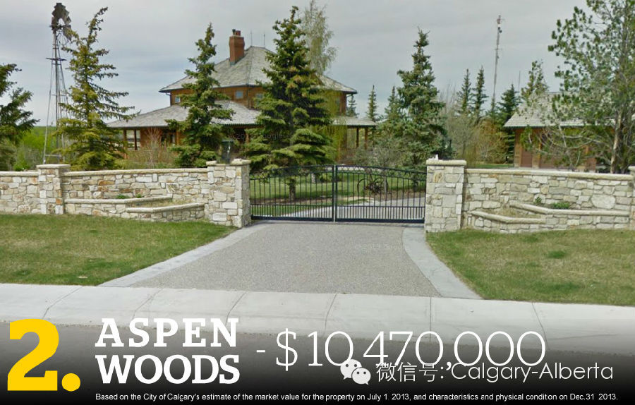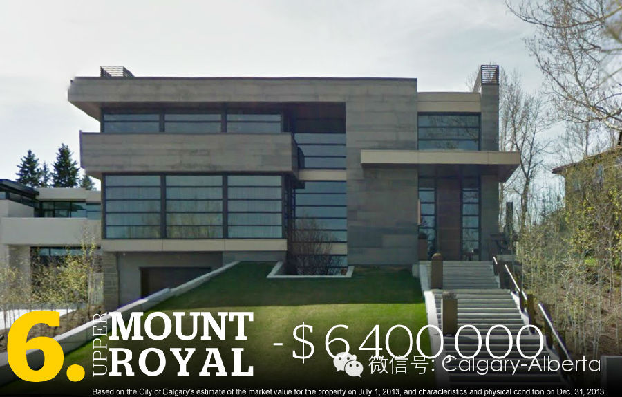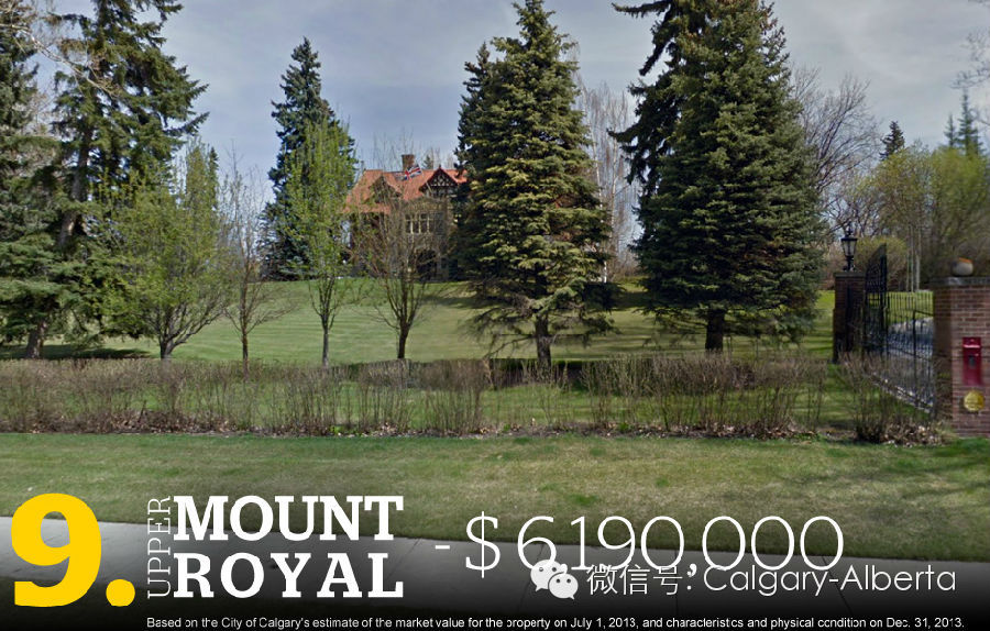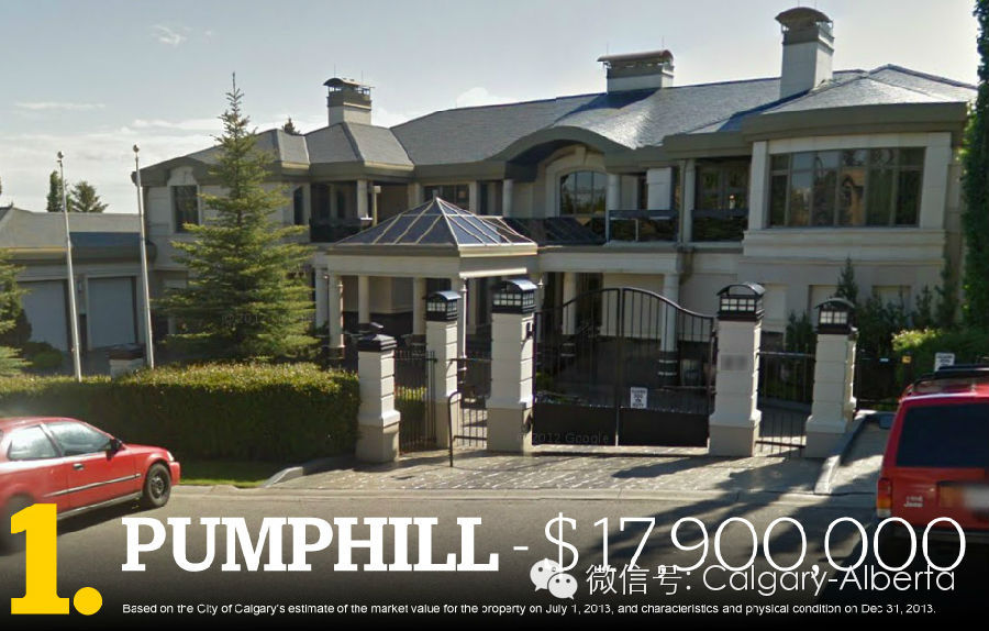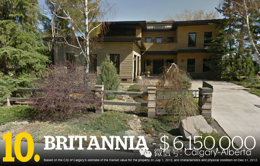 根据市政府对2013年7月1日的地产估价,下面是卡城最贵十大豪宅: