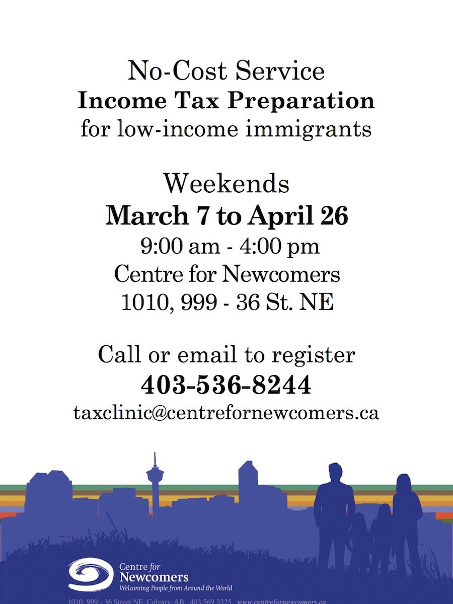 卡城华人社区服务中心将于三月九日至四月十九日期间(逢星期六及日)上午十时至下午二时提供免费报税服务。此服务由义工担任。