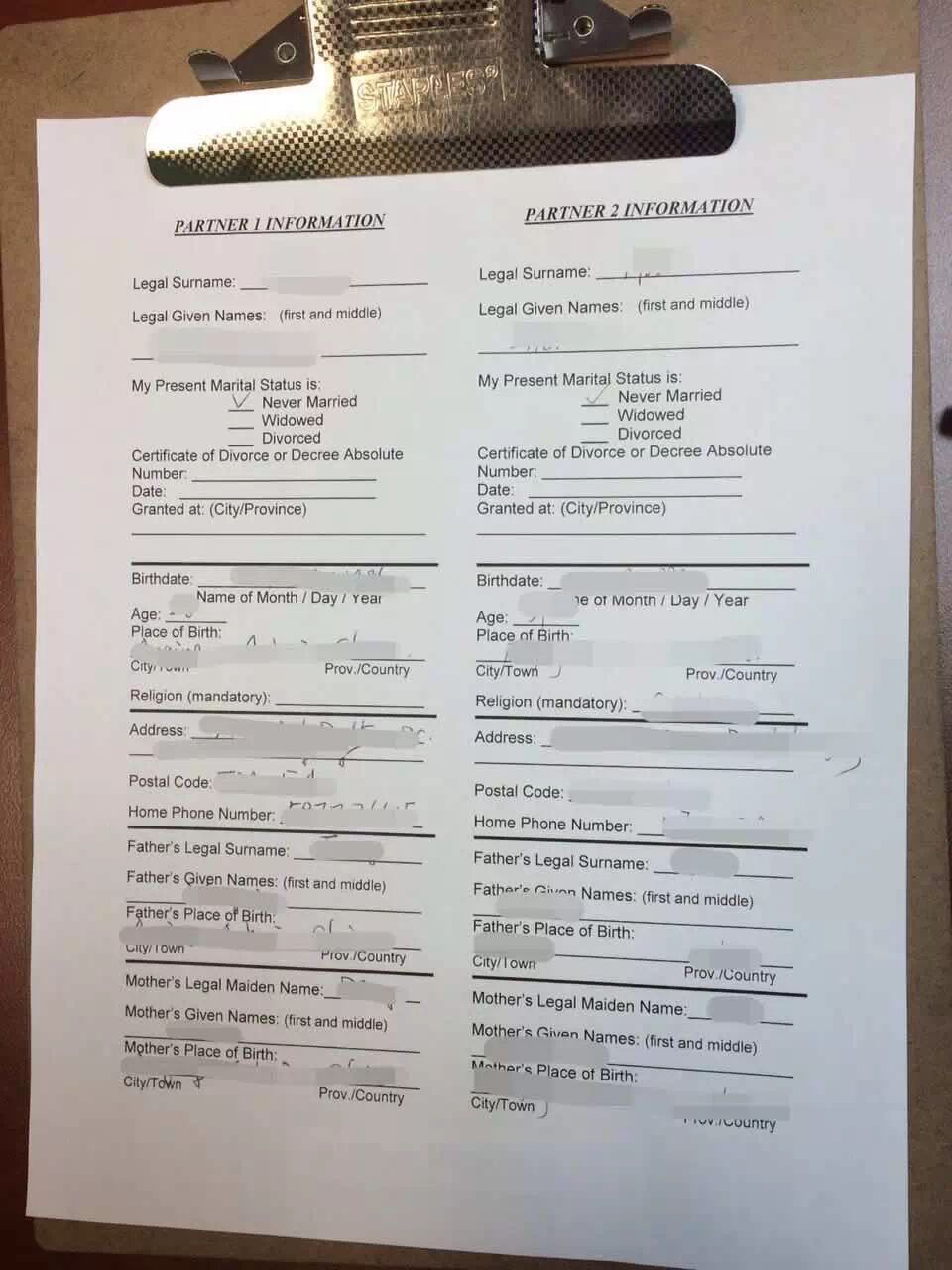 登记过程中,首先工作人员发给新人一张表格,内容包括双方出生地,父母姓名及出生地,宗教信仰,是否有过婚姻等等。