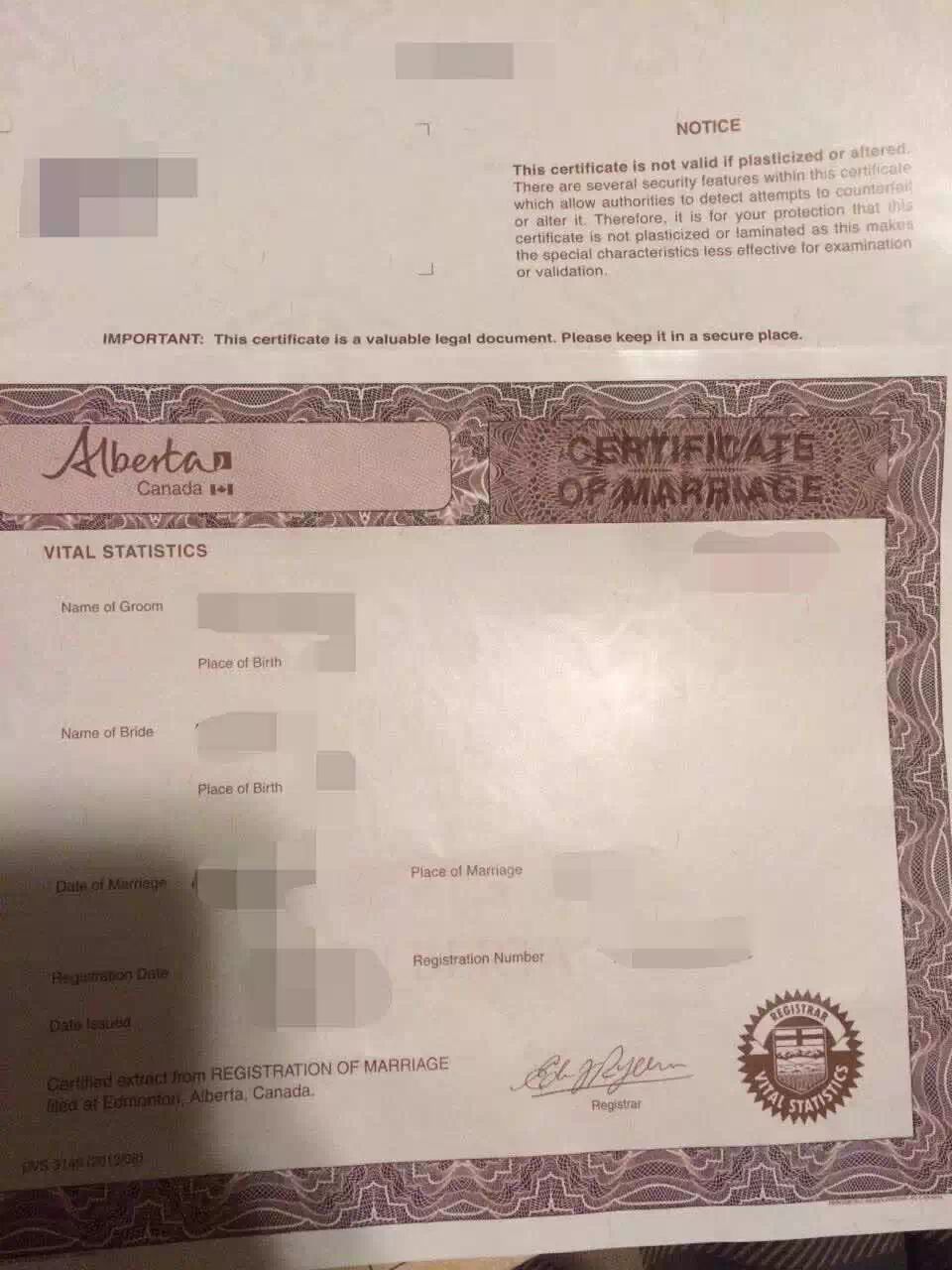 婚后十日左右,夫妻二人共同携带有效证件去任何一个登记点登记正式结婚证,共三种结婚证类型,大小不一可根据个人爱好选择,需缴纳$36。大概两周左右便可收到结婚证。