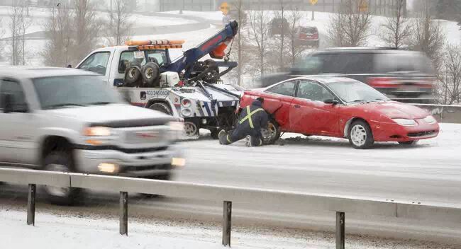昨天等待拖车的平均时间为2-4小时。一家拖车公司称昨天一天接到了几百个电话。