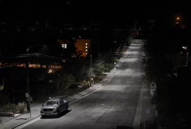 以下是美国奥克兰州一条街道采用LED照明系统的前后效果对比照:
