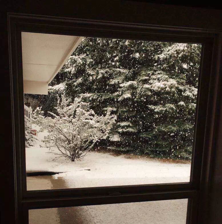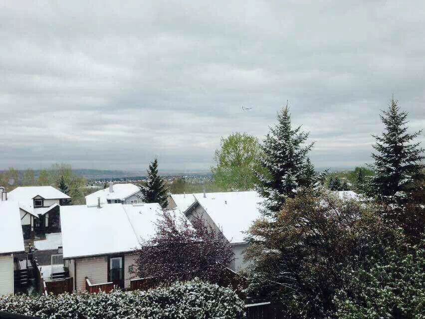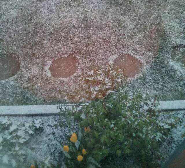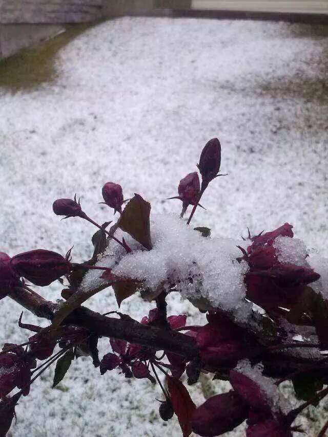 有木有搞错啊,五月飘雪,我养的花会不会冻死啊。这鬼天气!不过玩儿玩儿雪也不错~