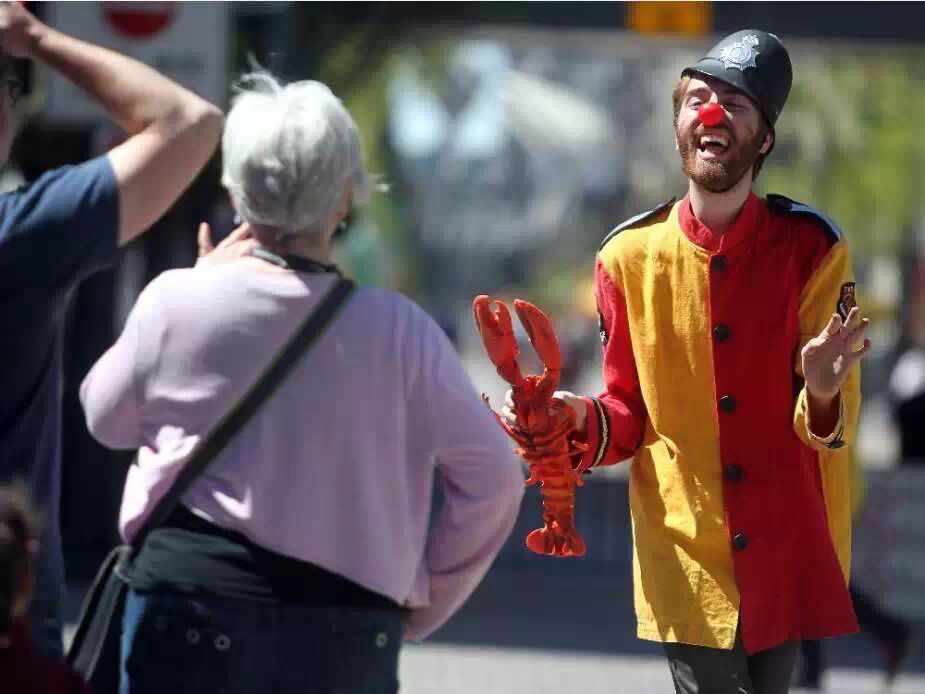 5月21日,Calgary International Children’s Festival,卡尔加里大学戏剧学院的学生,在Stephen‘s Avenue扮演喜剧Keystone Cop,他们帮助行人过马路,帮助来玩的学生们找到自己的校车