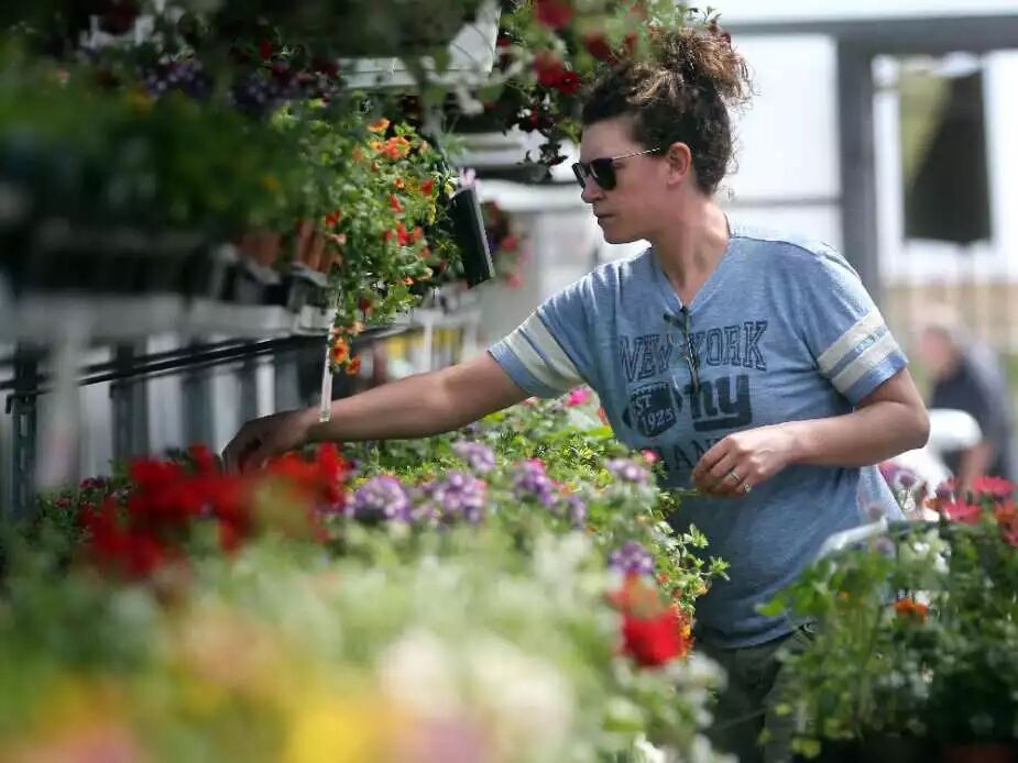 5月17日,Lyalta’s Erin Magwood正在卡城郊外的Garden Scents Garden Center园艺超市为她的院子挑选植物,五月的长周末被认为是夏天的开始。