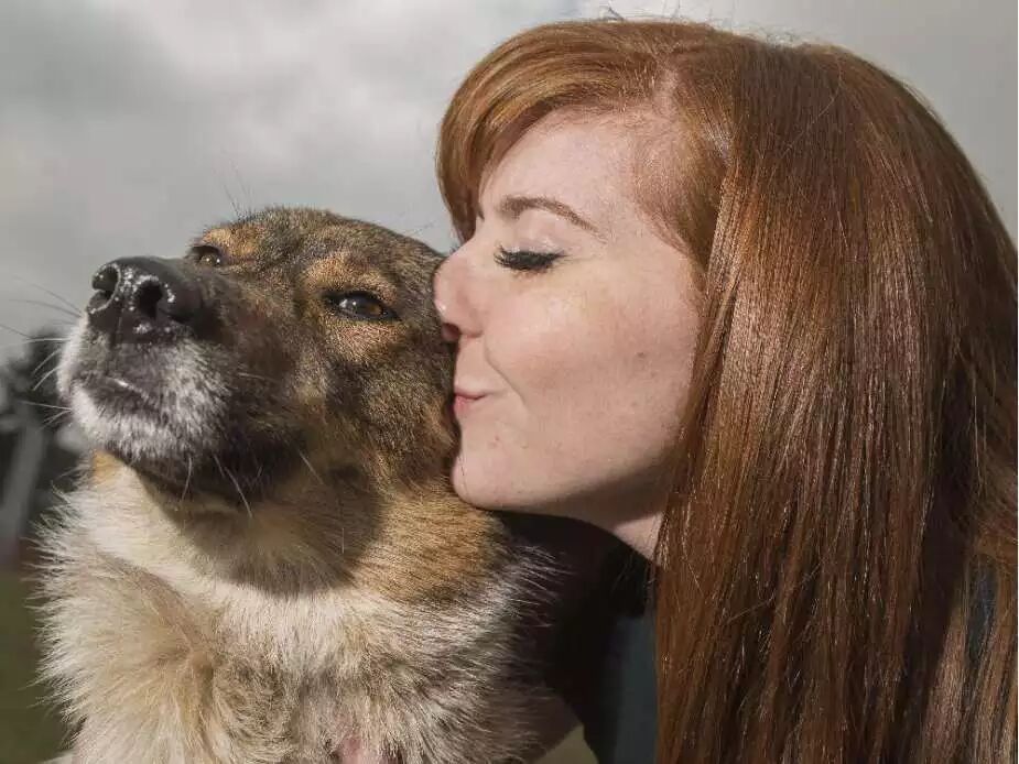 Beth O’Connor在和一只名为Leia的2岁小狗合影,Leia是哈士奇,牧羊犬和Coyote混血的小狗,Beth O’Connor是基金会Cultured Canines的创始人,这个基金为小狗提供训练服务。