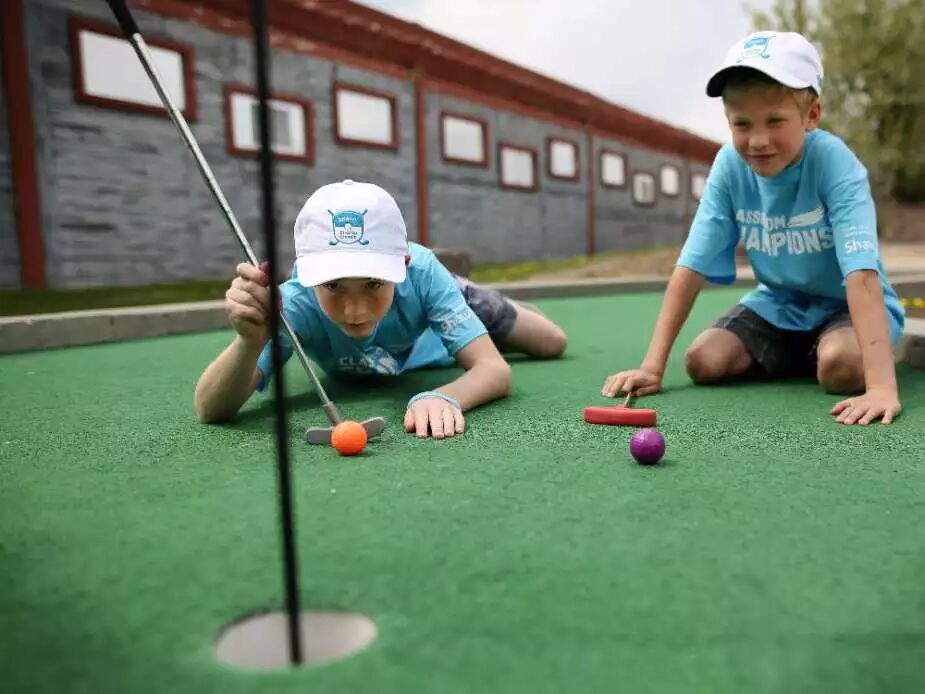 5月26日,14岁的Nicholas Morozzuo(左)和他12岁的弟弟Jacob,是校园冠军的代表。他们在卡城Shaw慈善大会期间玩迷你高尔夫。