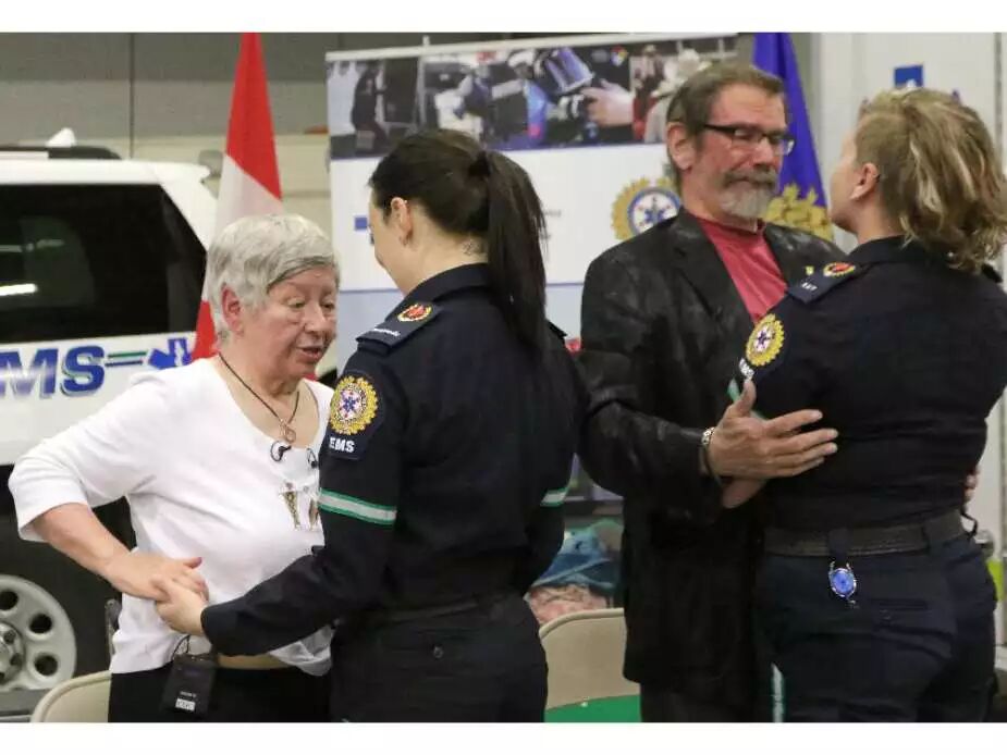 Marilyn Stallworthy和她的丈夫Bob又来到急救中心,感谢曾经在两年前就过他们一命的急救人员。