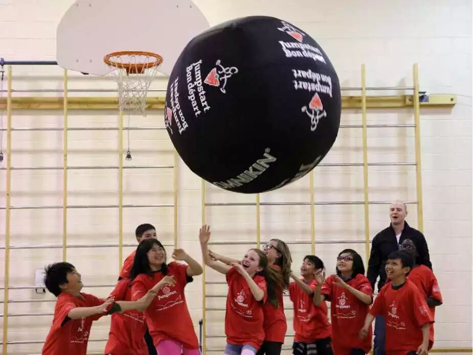 5月27日,Holy Trinity 小学的学生们在Flames Centre庆祝SportCheck‘s Jumpstart Red Ball活动月的开始