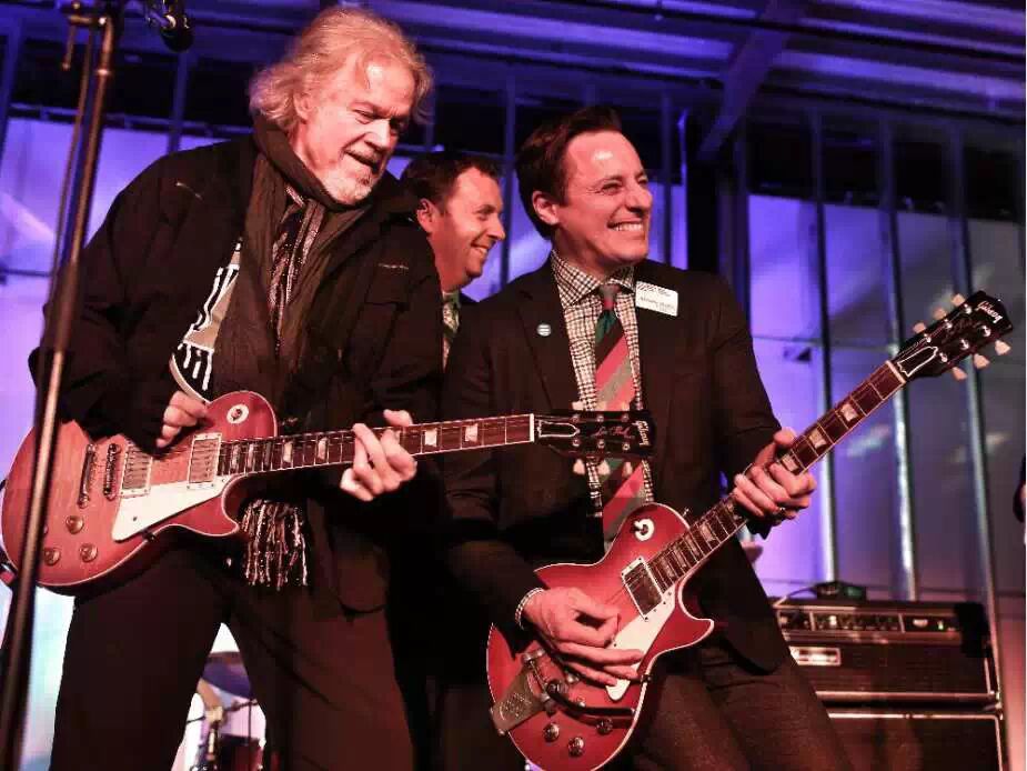 全国音乐中心的总裁兼CEO, AndrewMosker,在音乐中心上即兴挥起吉他,弹奏一曲。
