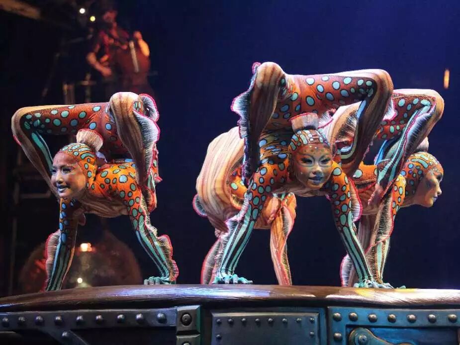 太阳马戏团在卡城牛仔节场地上进行以工业革命为主题的精彩马戏表演。