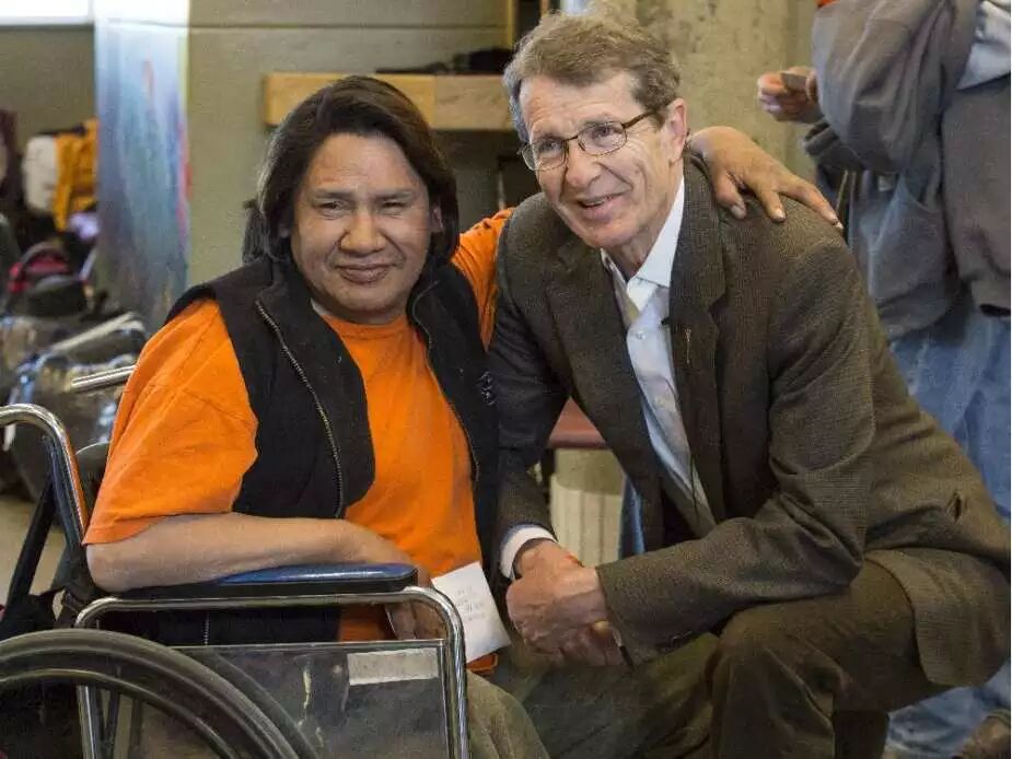 自由党临时领袖David Swann在卡城收容中心内合影,揭开了在卡城竞选活动的序幕。改善民生是今年该党竞选的口号之一。