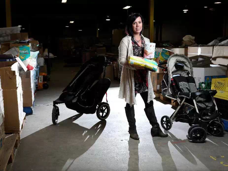 Melissa Nelson,前Neighborlink的首席执行官站在仓库里,在为未来的非营利组织的发展感到担心