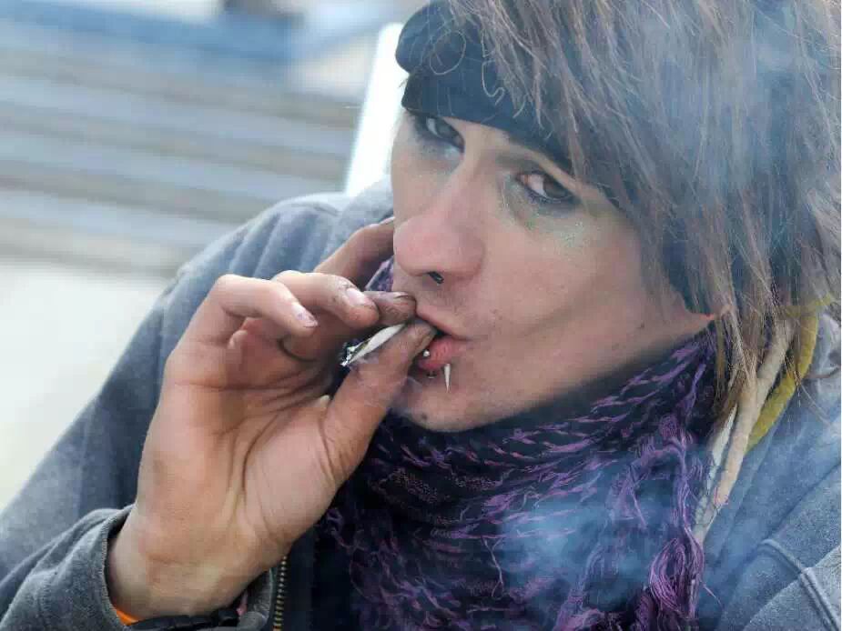 2015年5月2日星期六,在市政府举办的全球大麻比赛中Kaeli在抽大麻(卡城大麻合法吗~?)
