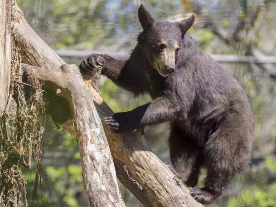 2015年5月7日,卡尔加里动物园的一个名叫Teslin的母熊崽在她的新家练习她的爬树技术