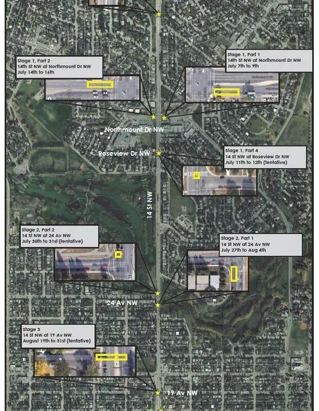 14 St. N.W. westbound at Northmount Dr. N.W. July 14 – 16