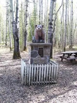 艰难跋涉到垂直与水平中心的交界处,我们的省中心点Centre of Province,你可以站在整个省的确切的中心位置。从Swan Hills进行一小段的徒步便可以看到小熊的纪念碑。