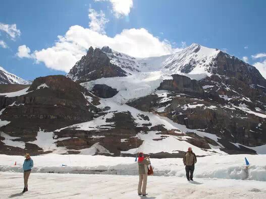 你多久才与雪山亲近一次?去Columbia Icefields走走吧,从93号高速公路只需走一小段便可到达Athabasca Glacier,不需要参加旅行团,自己徒步过去也没问题,但要确定自己不要超越政府划定区域。