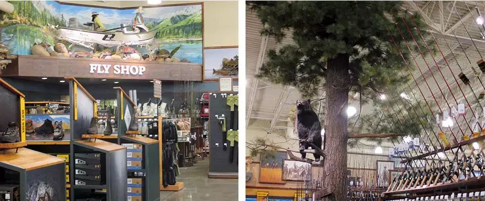 其实店里到处都有动物标本,渔具区域附近甚至还有一直爬到树上的熊。渔具区非常大,有你冬夏钓鱼时需要的所有装备。