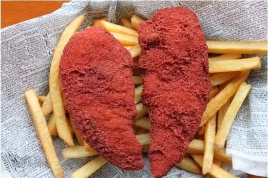 原本已经很美味的鸡肉,裹上天鹅绒蛋糕粉,再次烹饪,让美味再次升级(小编吐槽:你确定这不是暗黑料理?)