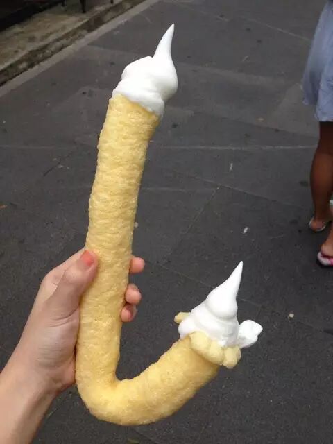 新鲜制作的镂空玉米管,充满了软雪糕。低脂肪 (小编吐槽:觉得吃起来好麻烦)