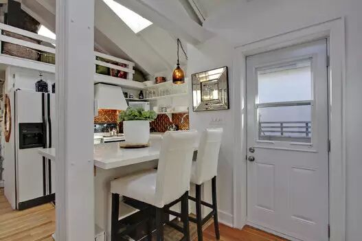 如今,这个小屋依然为一对夫妻或者一个小家庭提供完美的空间。5分钟车程可到downtown。小屋本身也保留了不少迷人的部分,两个铁爪形的浴盆,拱形的天花板,雪松木的屋顶以及镶嵌大鹅卵石的外墙。
