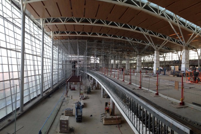 新的航站楼用于服务国际出发/到达的旅客,计划于今年秋季投入使用。目前外部施工年底之前会大部分完成,可是内部的工程还需要再多6个月,与航空公司和站内商家沟通协调。
