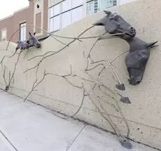如果您从牛仔节公园大门外开始您的艺术之旅,迎面而来的将是两座耸立在牛仔赌场前面的大型艺术雕像。
