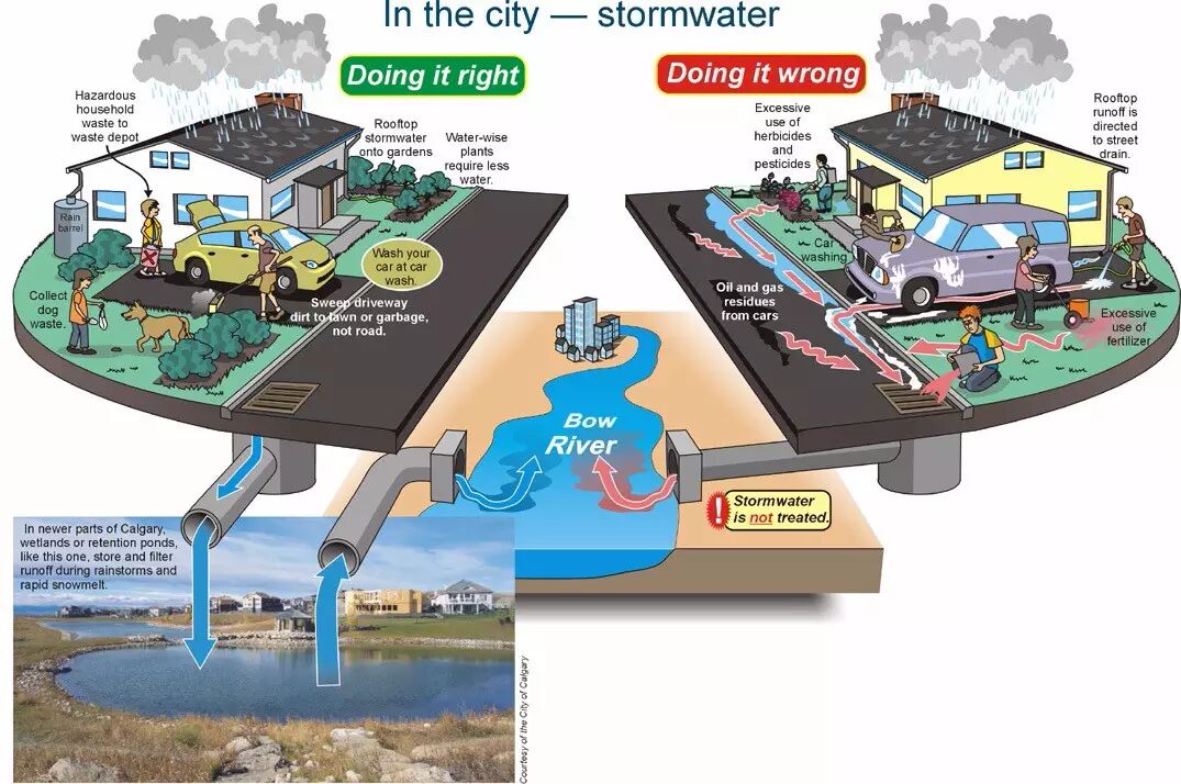 - 土壤、排泄物、庭院废物、危险液体、车辆所用各类液体(如防冻液)、皂液、洗衣液和从热水浴缸里排出的水禁止排入雨水排水系统。这些物质,包括在街边冲洗车辆用水,未经处理就流到了雨水排水系统里,并直接流入河流。