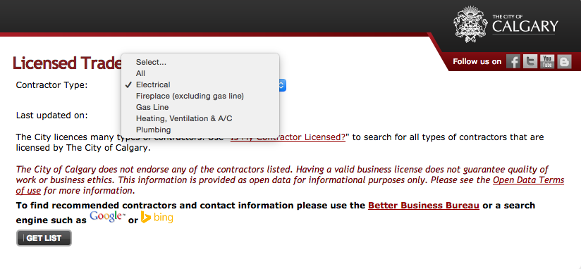 这个数据库可以分类查找合约商Contractor,确定自己的服务是否申请了执照,是否合法经营。