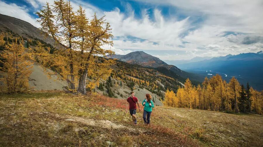 还有一个省力的线路:去滑雪场Lake Louise Ski Resort。你可以在滑雪场的缆车中欣赏14分钟山景,直接到达山顶。在Whitehorn Lodge Restaurant用过午餐后,附近有许多线路可供选择,看秋景可以试一下1.7公里的Kicking Horse Viewpoint Trail。