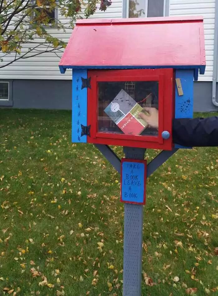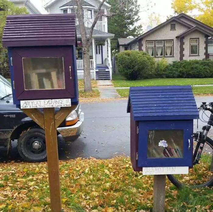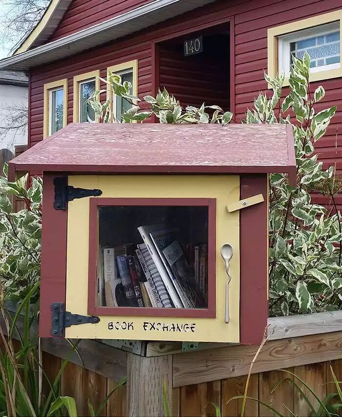 这些都是手工制作的小木箱,里面装满了免费的书籍。虽然是一个小小的理念,但是它的价值远远超过了制作使用的简陋材料。