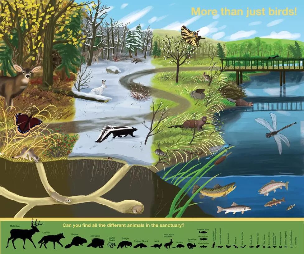 保护区离卡城Downtown 非常近,向东只有5公里。保护区中有2公里的步道,游客可以沿着步道穿过草地和森林等地貌,观赏不同的野生鸟类。