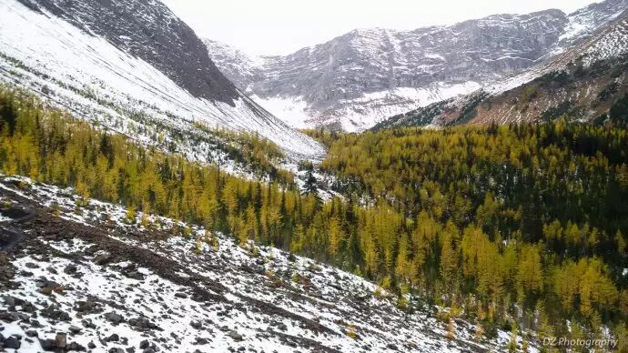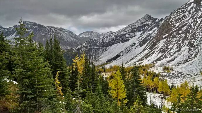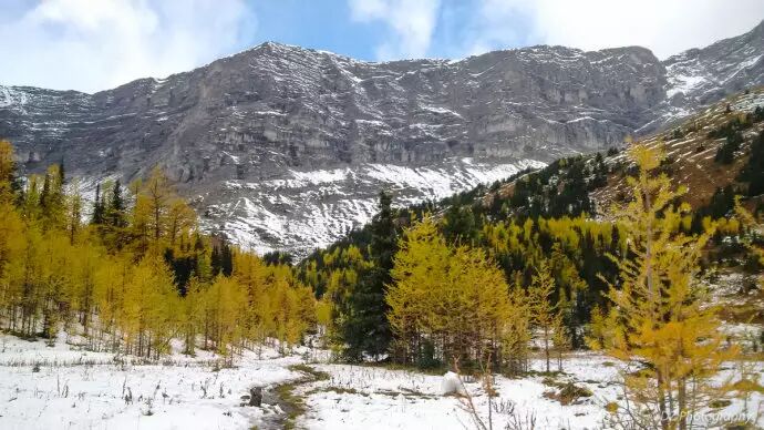 前几年我们分别去过几条不同的爬山线路去观赏金松,今年打算试试Kananaskis省立公园的Pocaterra Ridge,这条线路是当地人很喜欢的一条hiking trail,起点在Highwood Pass,这个Pass海拔2206米,是加拿大所有公路的最高点,因为起点高,应该不用爬得太高就可以到达山脊。