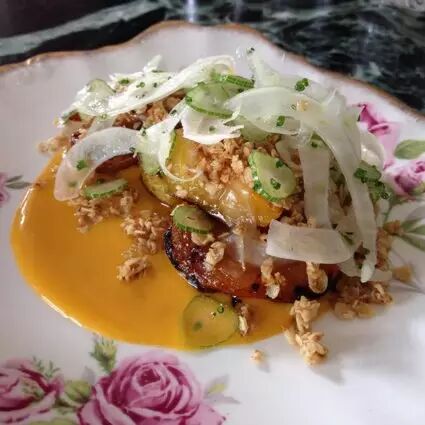 菜单上的菜都不算贵,每一样都值得一试。不过紫菜脆饼nori crumpets, 法式奶油炖毛豆edamame with crème fraiche 和盐焗比目鱼salted halibut是这家店的当家菜,每次都想点。