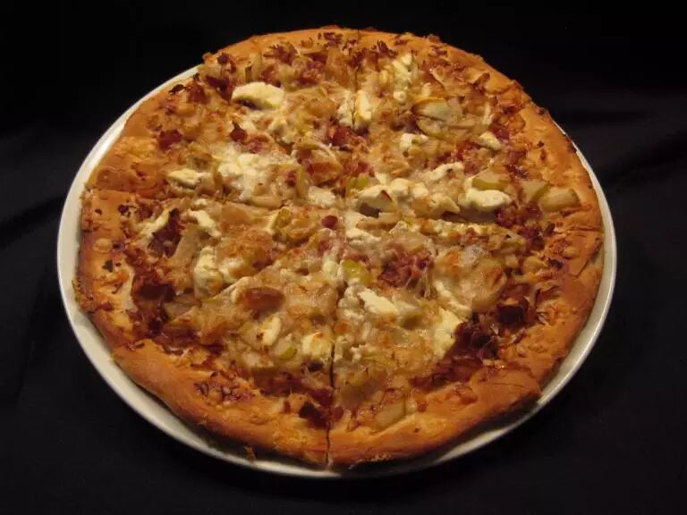 这款 pizza味道类似肉桂山芋和胡桃,加上了cranberries,mozzarella奶酪,意大利熏肉,红胡椒和鲜牛至叶。