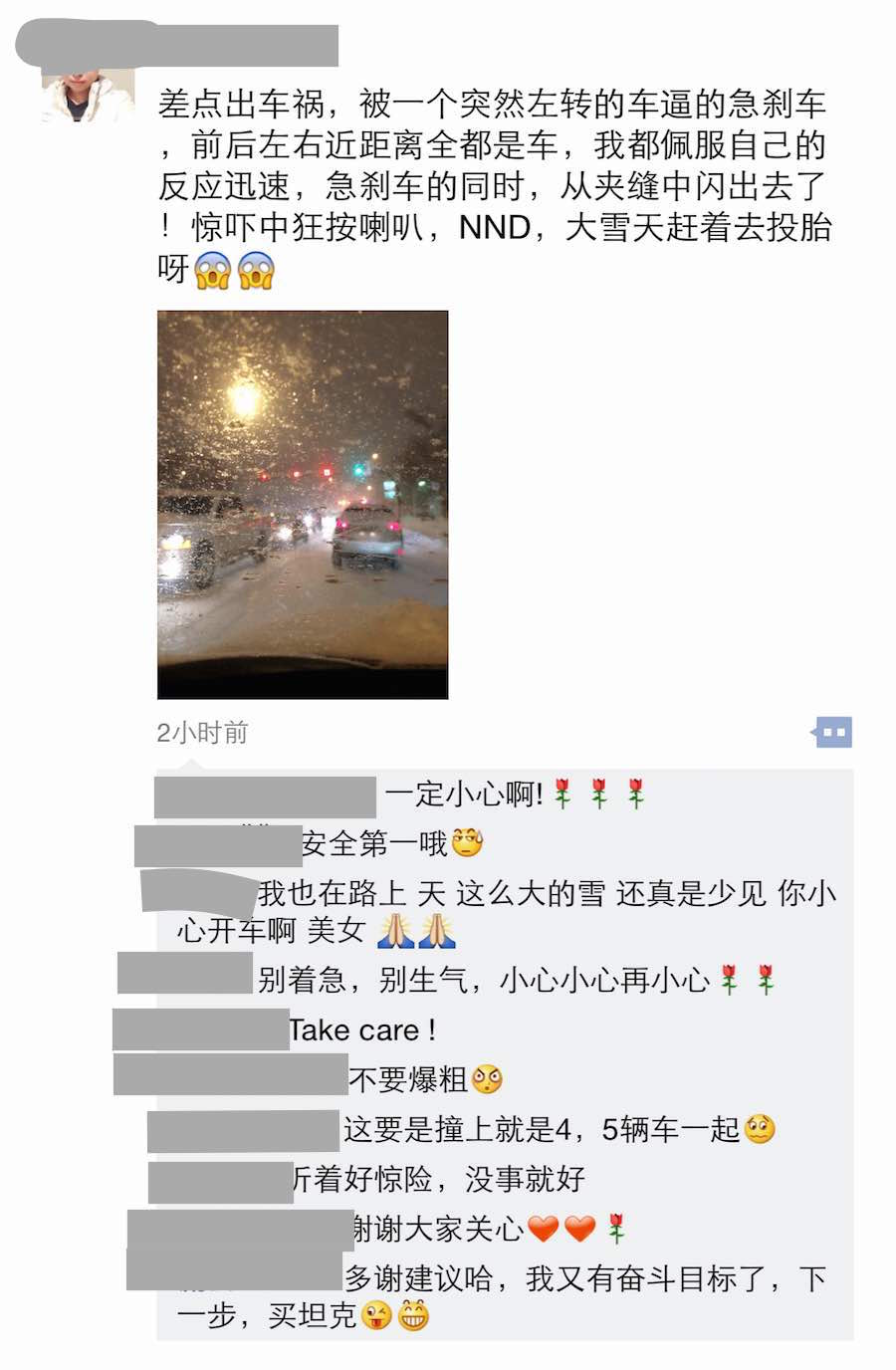 大哥这种天气就别开车拍照了,注意安全呀!但愿你坐的副驾驶位置