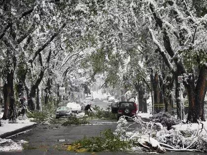 9月8日卡城大雪,前一天的气温还高达25C。三天的降雪,卡尔加里国际机场的降雪达到28cm。卡城西部地区达到45cm。在过去的130年间,第一场降雪经常在秋分时节来到。